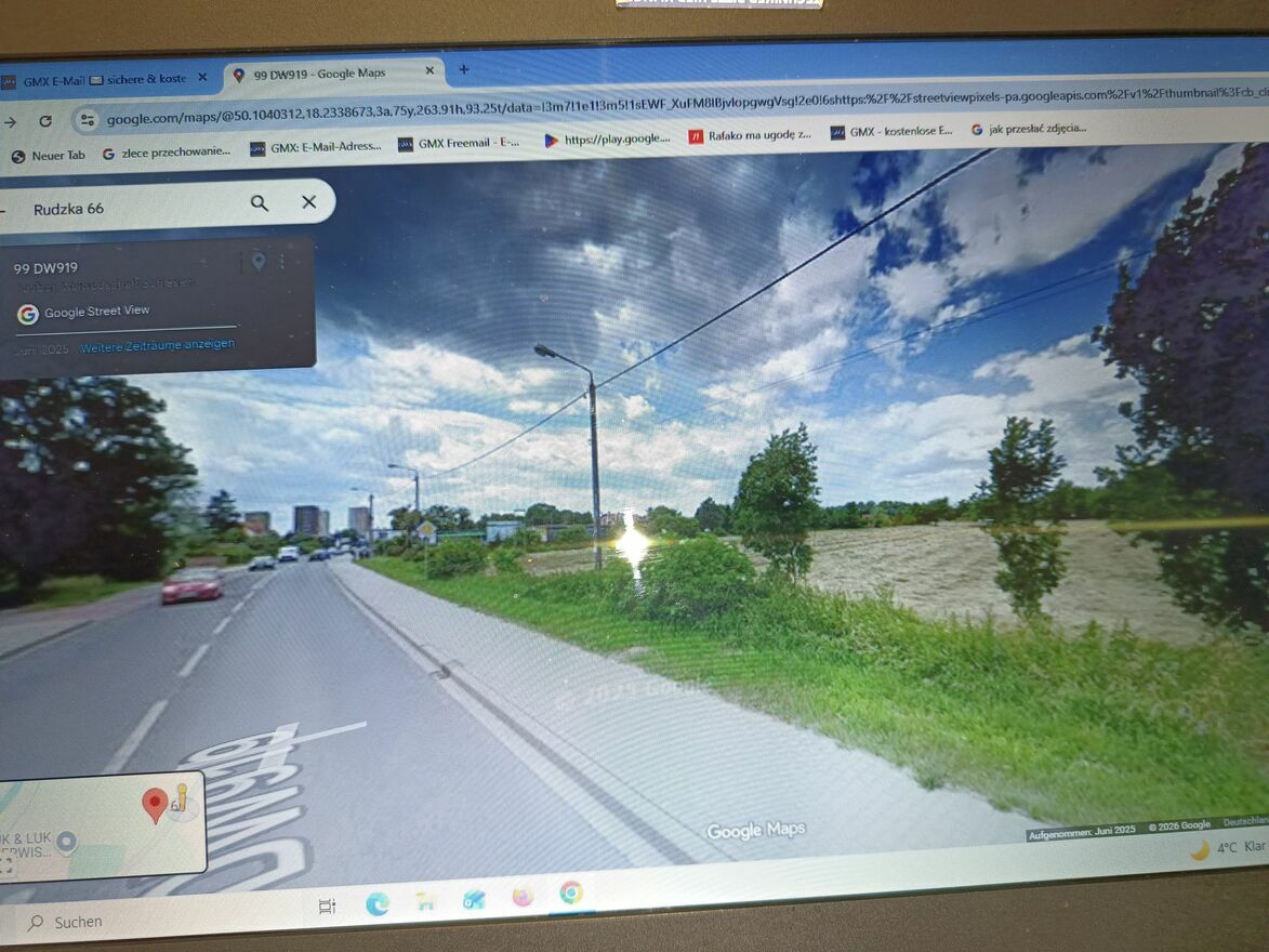 Polozenie : Raciborz ul Rudzka 6. Droga na kierunek Gliwice przed obwodnica.Dzialka,nr.710/172. 86m dostepu od glownej drogi .Idealne na centrum uslugowo-handlowe ze stacja paliw.Centrum medyczne,itp
