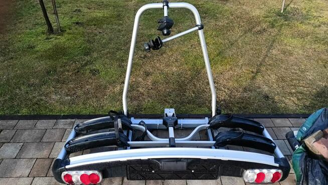 Na sprzedaz bagaznik Thule na 3/4 rowery EC 909 G5 na 60kg .Stan dobry wizualnie pekniete sklejone plastiki rogowe czarne ...
